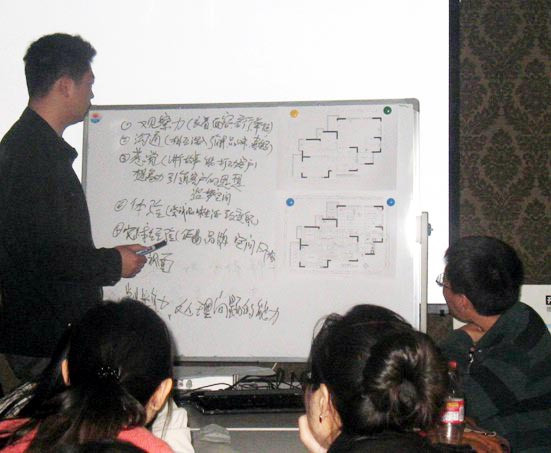 此次設(shè)計師沙龍的召開,鼓北大區(qū)19位設(shè)計師無一缺席。本次沙龍的主題是由鼓樓精品設(shè)計館高級設(shè)計師張勇帶來的:高端客戶溝通技巧。